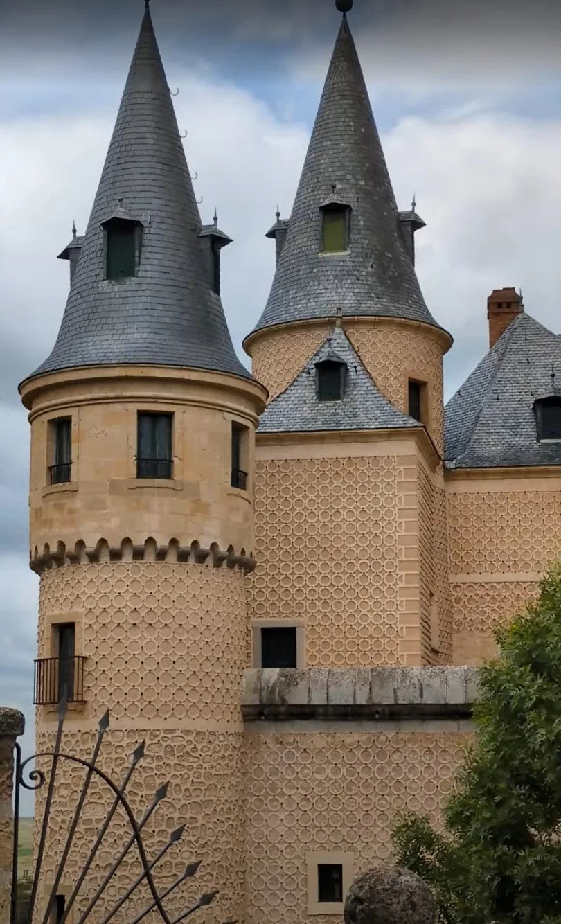 From the base of the aqueduct, we took a smaller bus up the winding streets of the old town to the Alcázar—a medieval fortress perched on a rocky cliff at the edge of the city. The bus was specially sized to navigate Segovia’s narrow historic roads and dropped us right at the entrance.